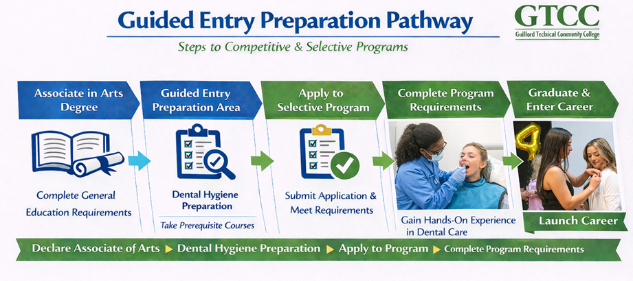 Students who intend to apply to selective or limited admission programs at Guilford Technical Community College may declare a Guided Entry Preparation Area while completing prerequisite coursework.